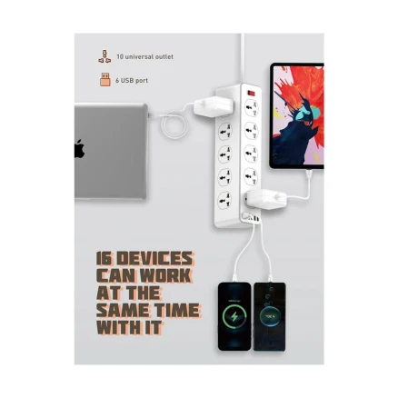 Ldnio 3 Pin 10 Port White Power Strip, User Manual