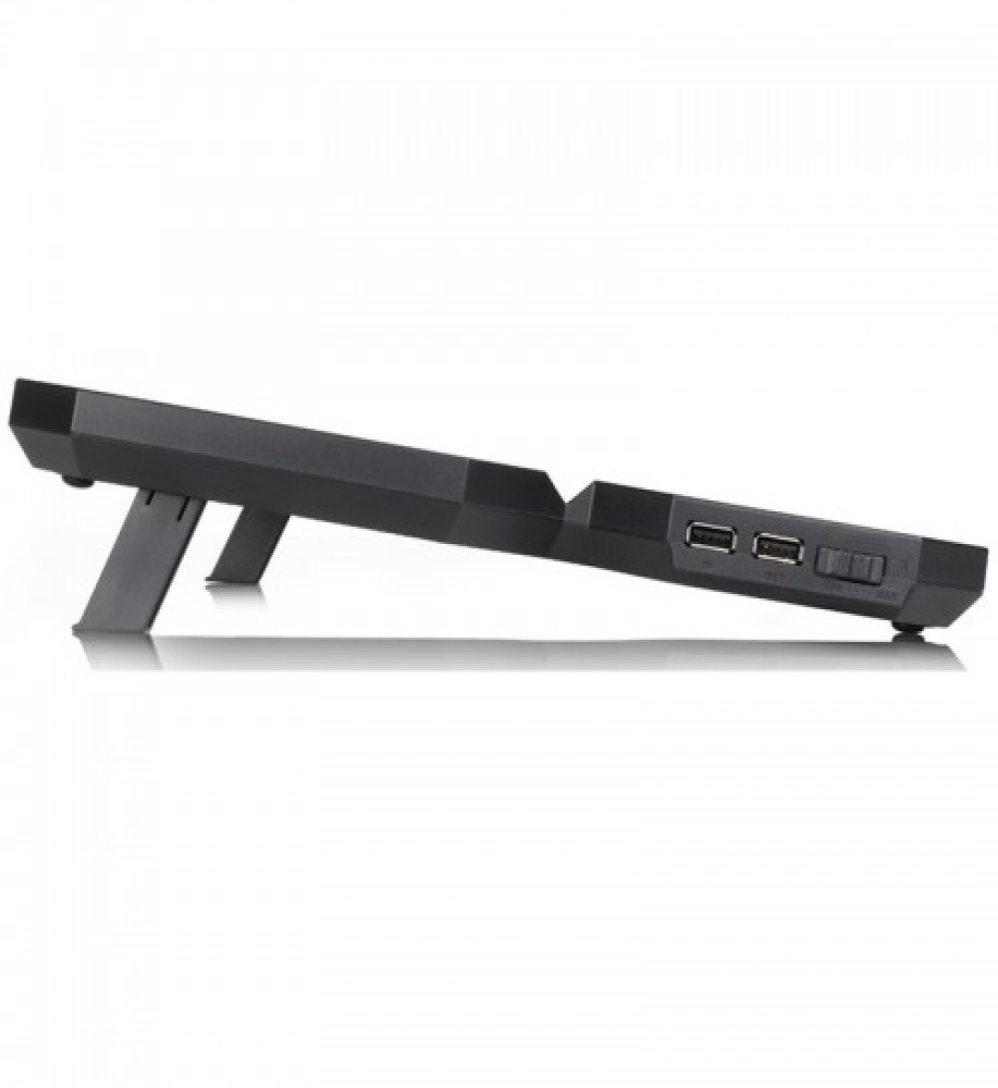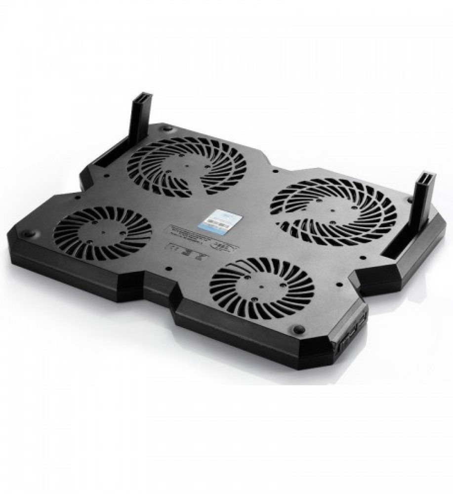 The DeepCool Multi Core X6 Laptop Cooler is designed with a beautiful black butterfly arrangement with 4 fans disposed of in a 2x2 matrix. This cooling pad is compatible with 15.6" laptops and below. 4 built-in fans deliver high airflow volume for cooling the entire notebook base with no blind area. It has two 140X15mm fans and two 100X15mm fans. It has a Hydro Bearing. It has a Rated Voltage of 5VDC and an Operating Voltage of 4.5~5VDC. It features a Fan Speed of 1000±10%RPM and 1300±10%RPM. It has a 121.4CFM of Max. Air Flow. The cooler is guaranteed to dissipate heat from the hottest locations, such as the HDD or VGA card area. Creative Multi-Core Control Technology enables users to select from one of the 4 different fan operating combinations to cater to various intensities of notebook heating: 4 fans ON / 2 upper fans ON / 2 downside fans ON / 4 fans OFF. It has an Ergonomic design and 2 Viewing Angles. Fixed 9° ergonomic viewing angle to maximize comfort when reading documents, watching videos, and playing games. This viewing angle is also designed for notebook stability and safety. The Overall Dimension of the cooling pad is 380x295x24mm. It comes with 2 built-in USB 2.0 ports, allowing external USB devices to be connected to MULTI CORE X6, perfect for mobile phone charging or data transfer. The DeepCool Multi Core X6 comes with a 1-year warranty.